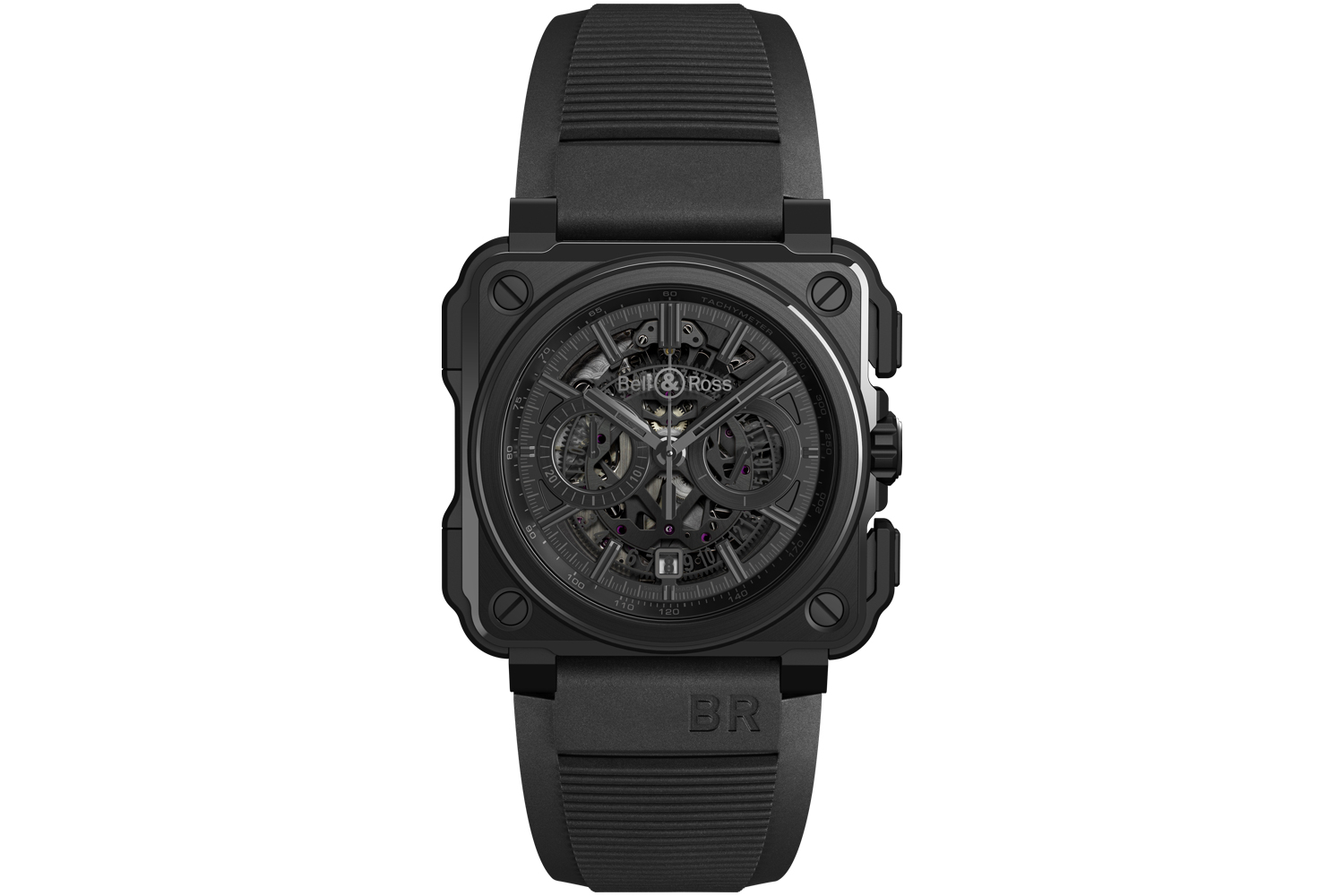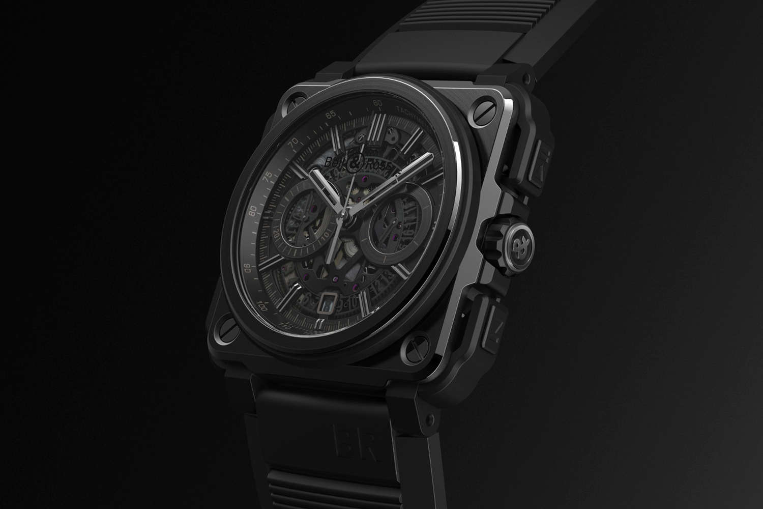 Per Wippendrücker lässt sich die Chronographenfunktion nutzen. Für dessen Präzision sorgt das Automatik-Kaliber BR-CAL.313, das durch den getönten Saphirglasboden sichtbar ist.