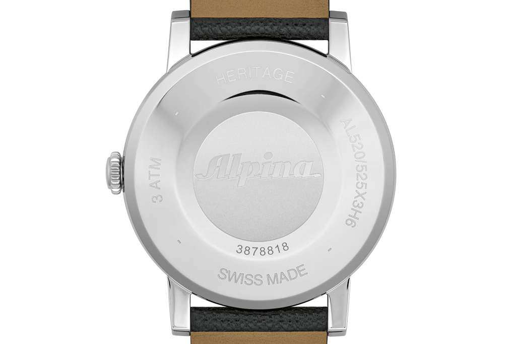 Vorbild war eine Uhr aus dem Alpina-Archiv, welche aus heutiger Sicht einen winzigen Durchmesser von 25,7 Millimetern Durchmesser hat. Die „Heritage Automatic“ wurde auf 38 Millimeter erweitert und damit an die aktuellen Vorlieben angepasst.