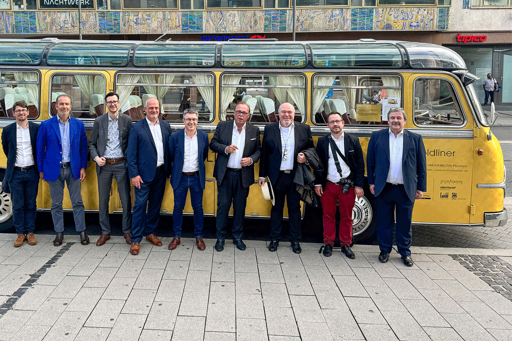 Nach einem Besuch der Schmuckwelten mit einer Begrüßung in den Ausstellungsräumen der Deutschen Schmuck und Uhren GmbH lud der Bundesverband die Teilnehmer der Tagung zu einer Fahrt durchs Würmtal im Pforzheimer „Goldliner“ mit anschließendem Abendessen ein.