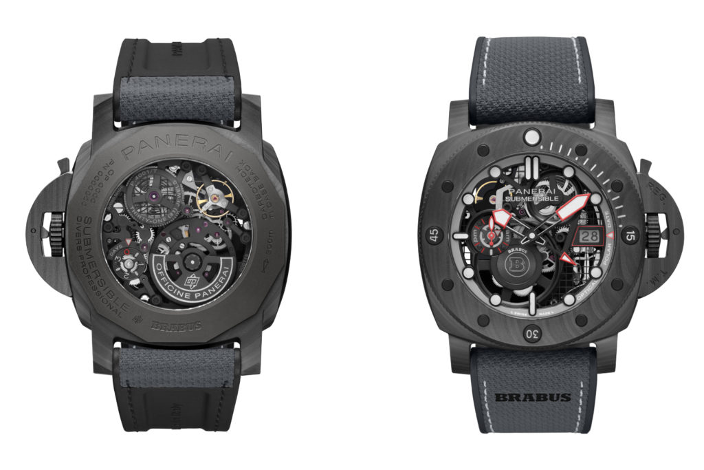 Das erste Ergebnis dieser Kooperation im maritimen Bereich ist die auf 100 Exemplare limitierte „Submersible S BRABUS Black Ops Edition“ (PAM01240) mit skelettierte Uhrwerk und patentierter Datumsanzeige, die einen Blick auf das Datum bei 3 Uhr erlaubt, ohne die Mechanik des skelettierten Uhrwerks zu verdecken.
